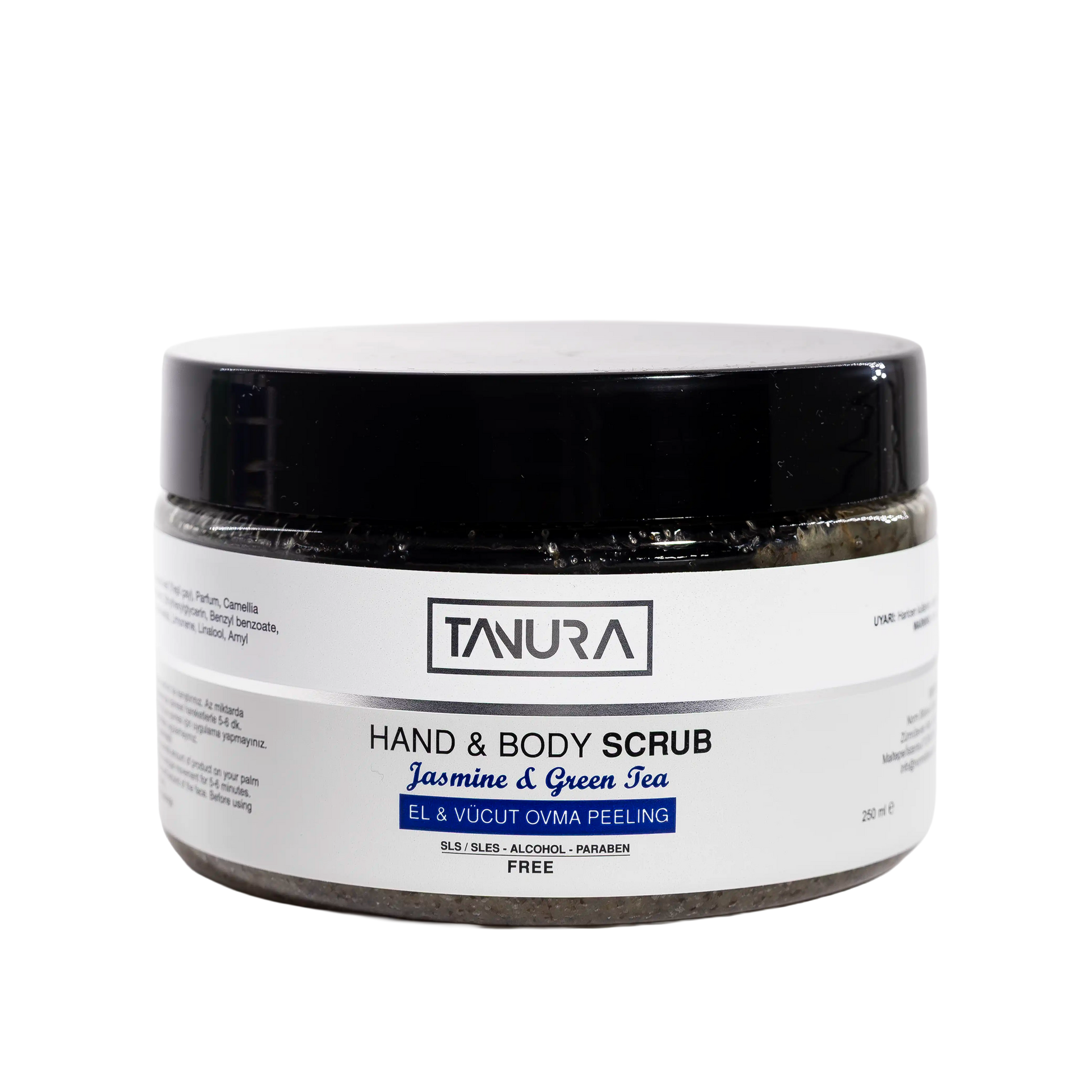 مقشر اليد والجسم بخلاصة الياسمين والشاي الأخضر، خالٍ من الكحول والبارابين والمواد الضارة. يعمل على إزالة الجلد الميت والشوائب، تنعيم البشرة، وتجديد خلاياها، مع ترك البشرة منتعشة وناعمة.