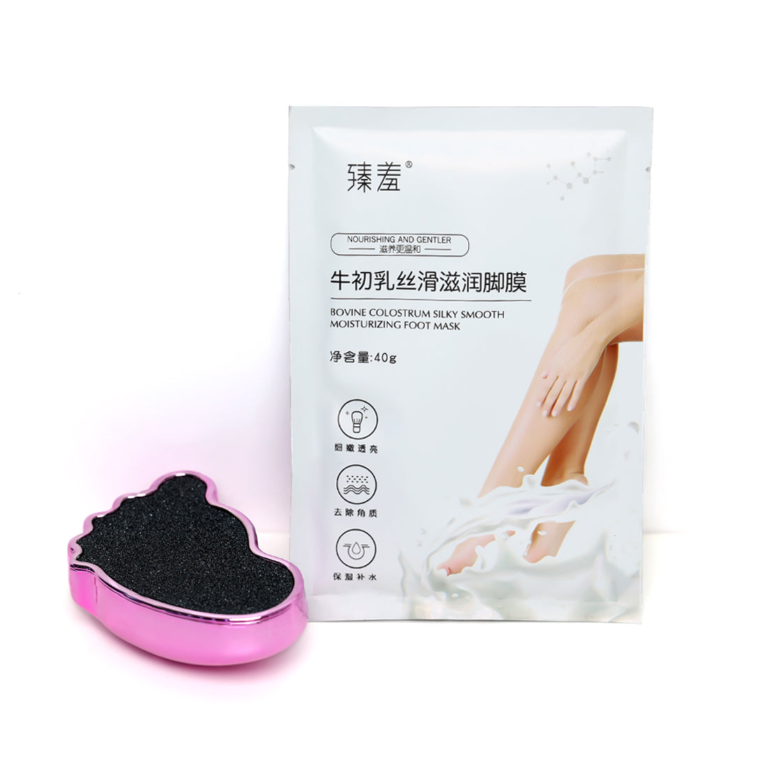 بكج يتكون من مبرد وماسك للقدمين لإزالة الجلد الميت والقاسي كما يساعدك في التخلص من التشققات لتتمتعي بأقدام خالية من العيوب وناعمة كالأطفال
