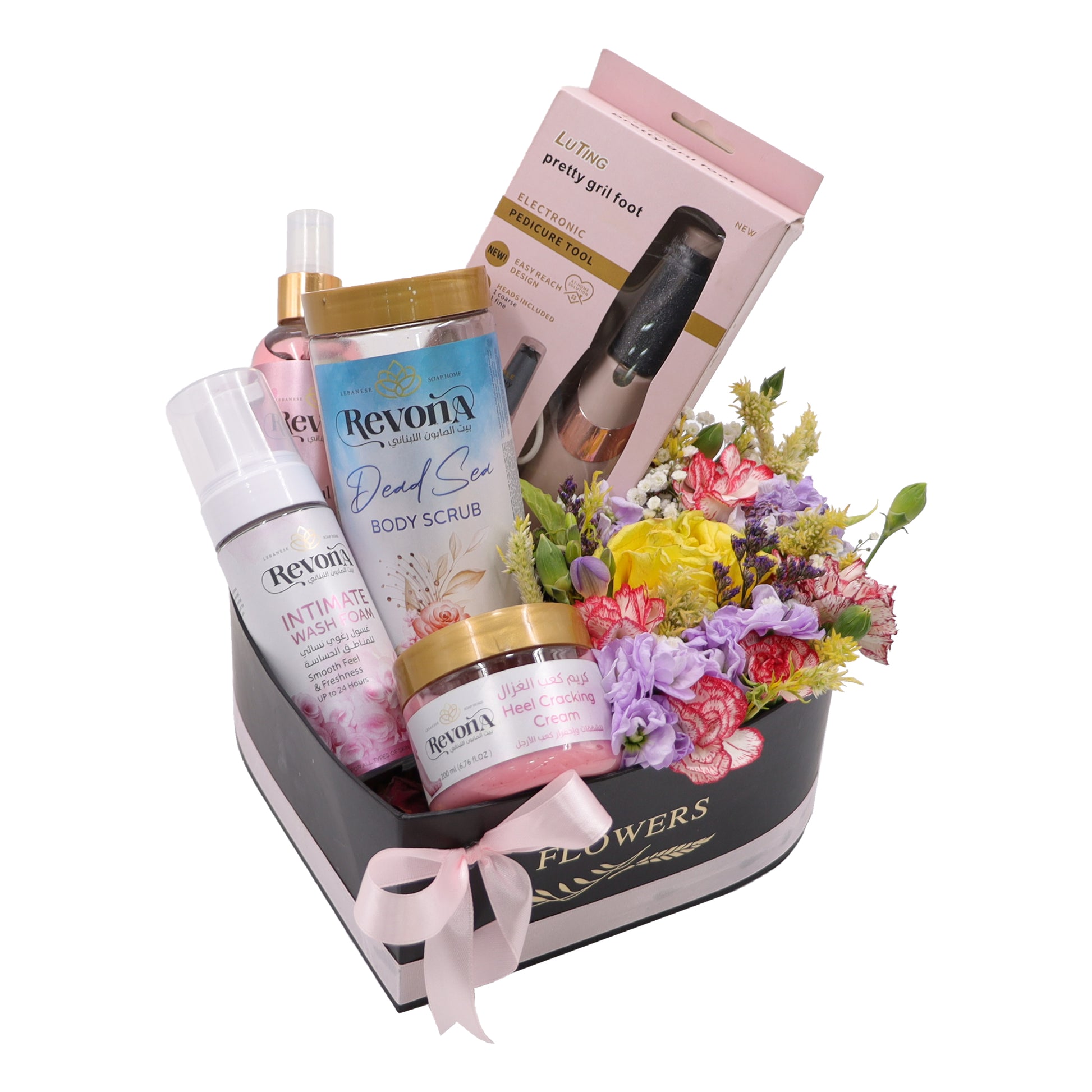 .يتكون البكج من:جهاز بدكير،كريم كعب الغزال،مقشر أملاح،سبلاش جسم،غسول للمناطق الحساسة